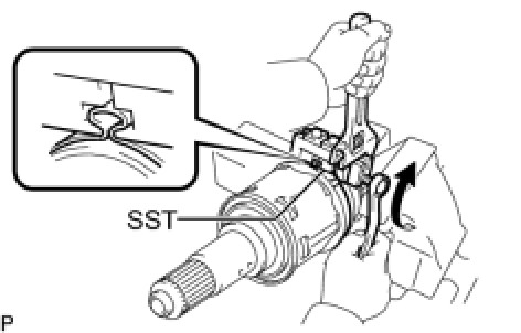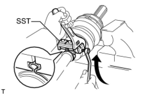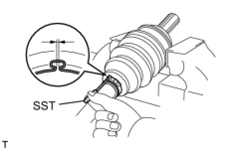 (c) Place SST onto the No. 2 front axle inboard joint boot clamp.