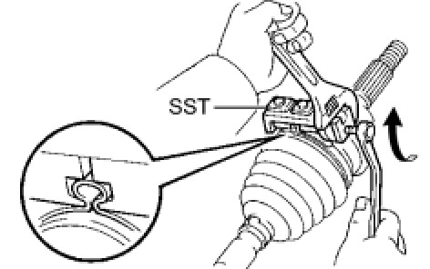 (c) Place SST onto the front axle outboard joint boot clamp.