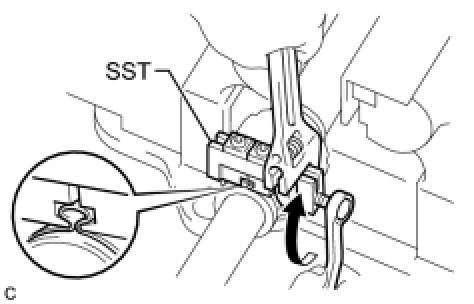 (c) Tighten SST so that the No. 2 front axle outboard joint boot clamp is pinched.