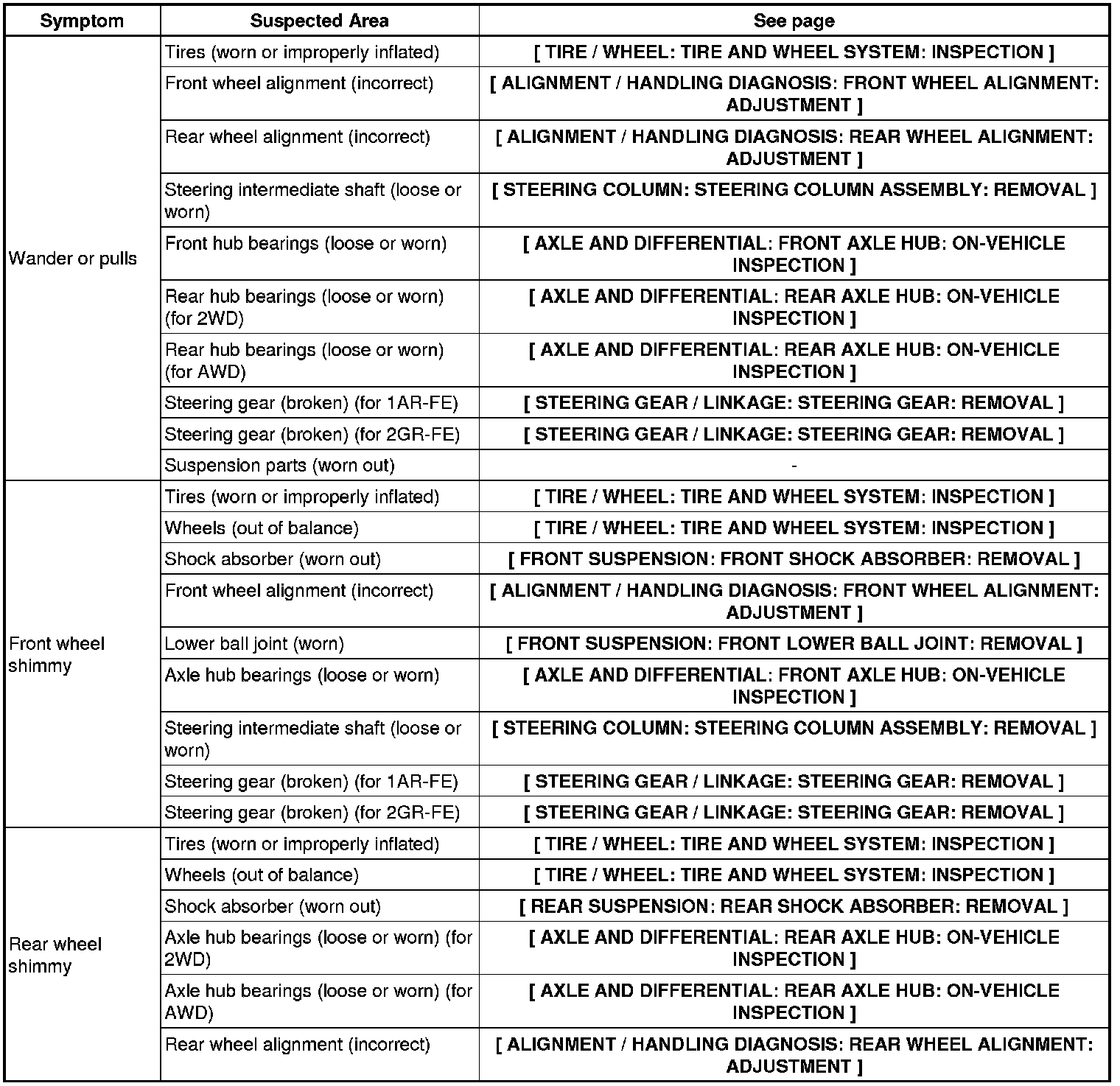 AXLE AND DIFFERENTIAL: AXLE SYSTEM: PROBLEM SYMPTOMS TABLE