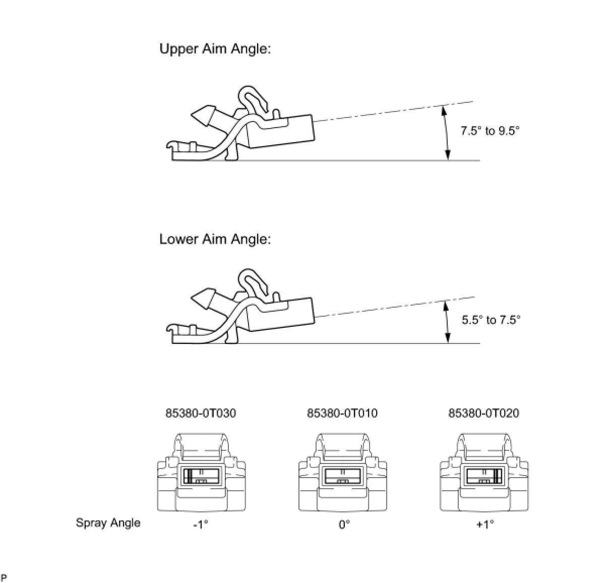 (2) adjustment is not necessary for this spray type washer nozzle. If it is necessary to change the nozzle angle, replace the washer nozzle with one that has a different nozzle angle.