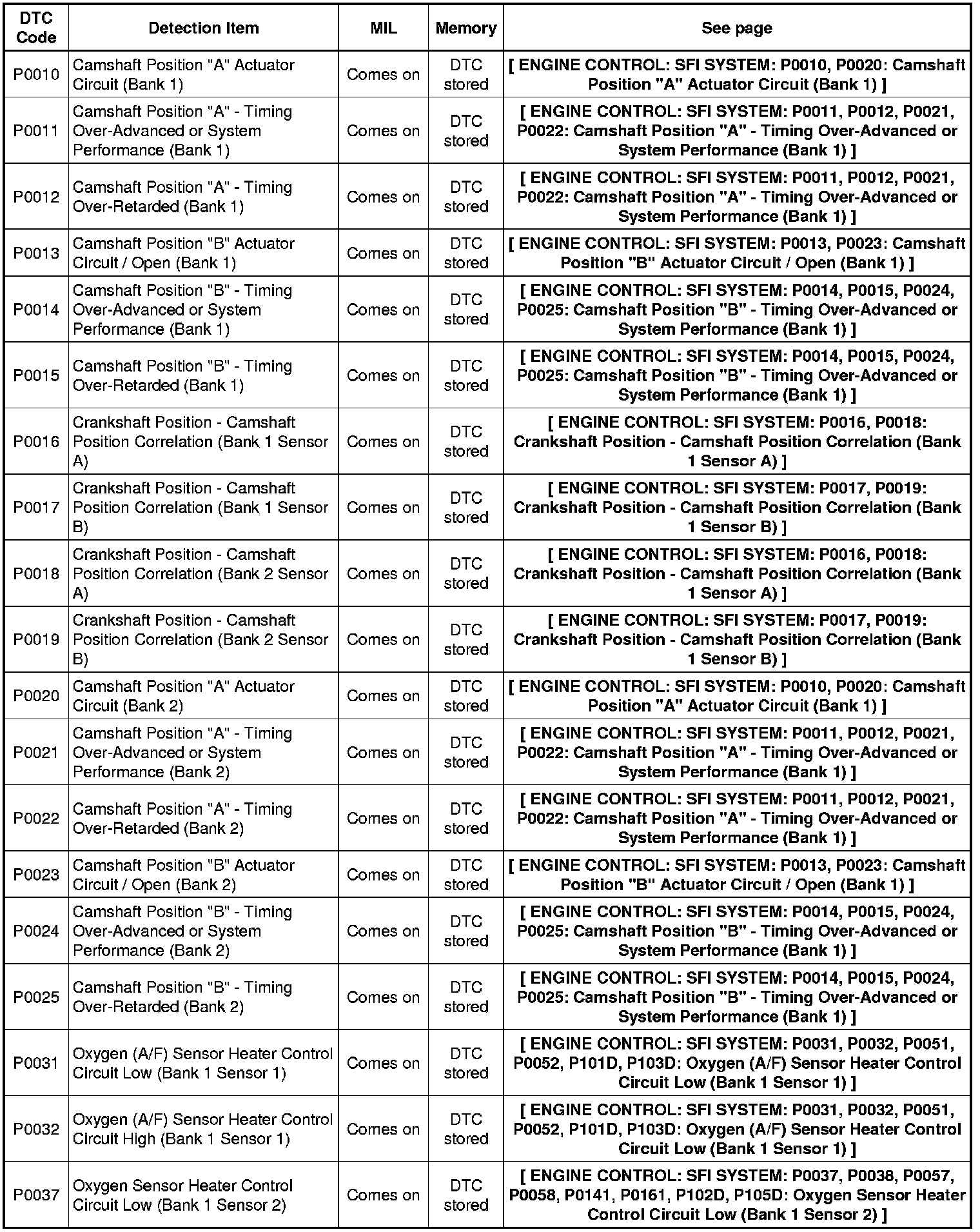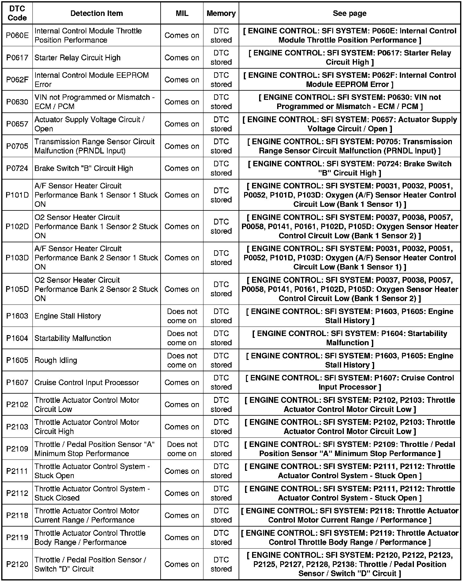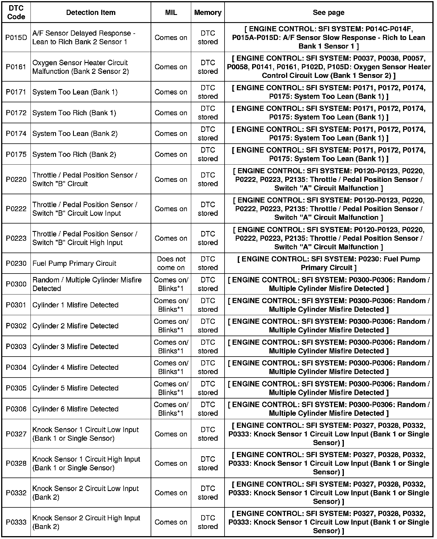 2GR-FE ENGINE CONTROL: SFI SYSTEM: DIAGNOSTIC TROUBLE CODE CHART