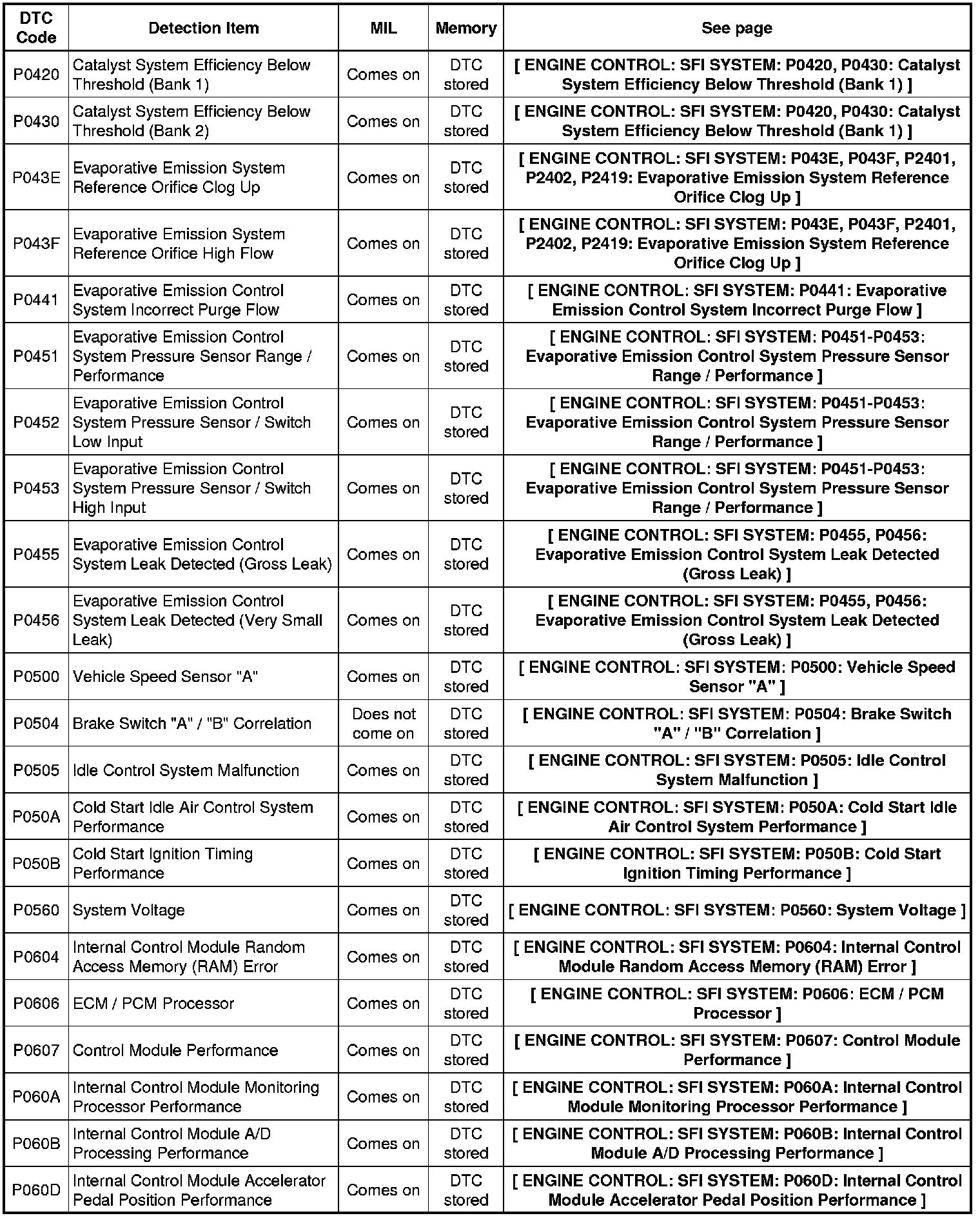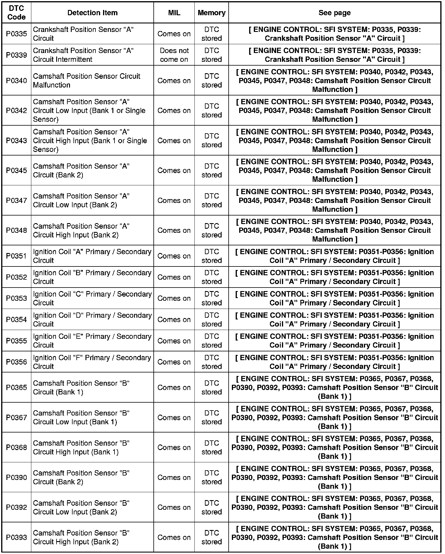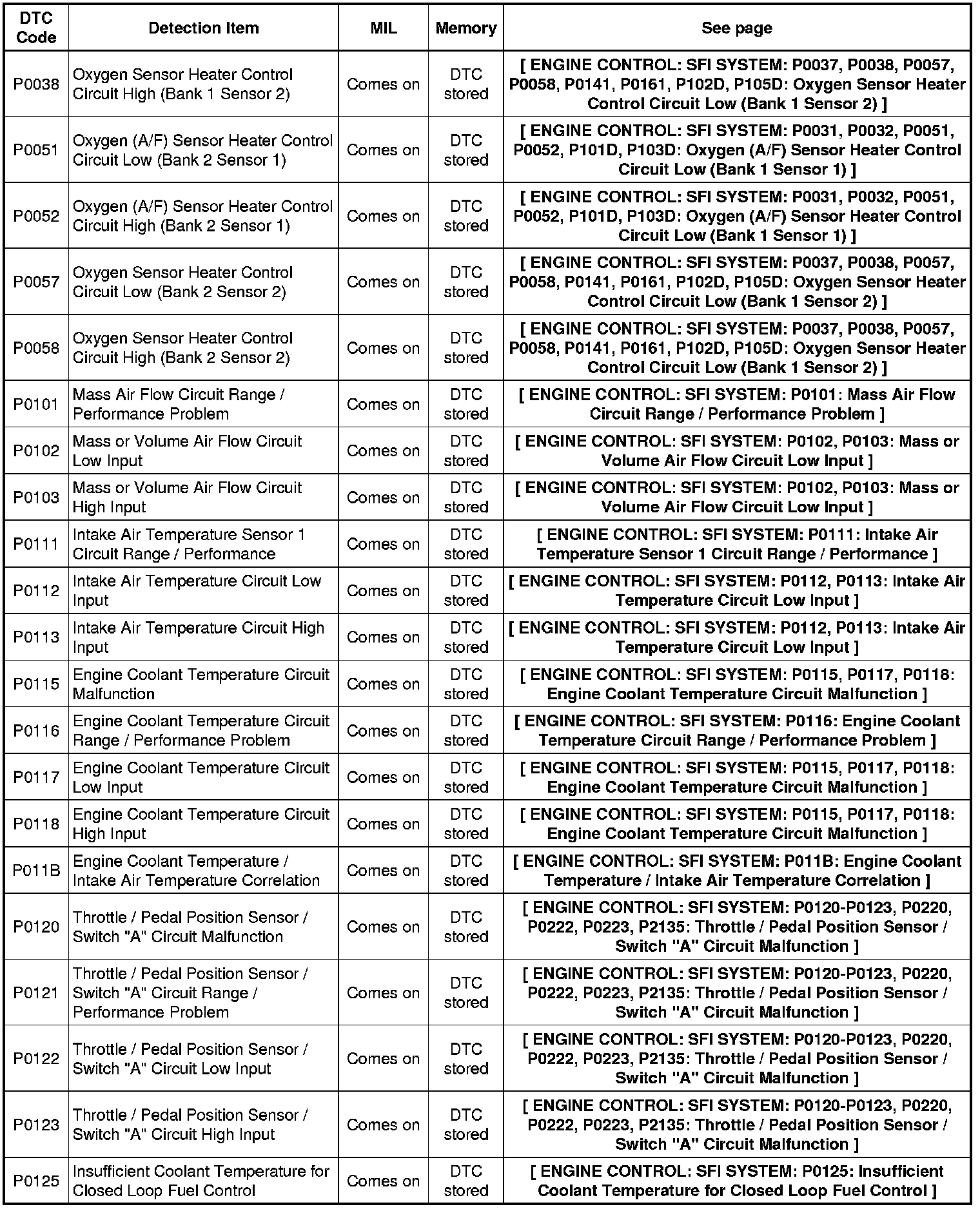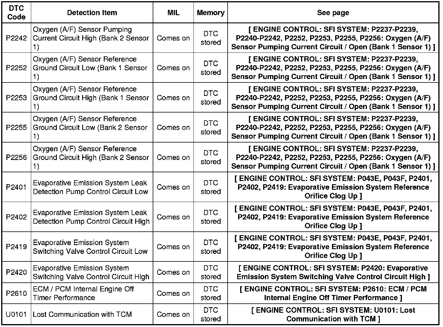 2GR-FE ENGINE CONTROL: SFI SYSTEM: DIAGNOSTIC TROUBLE CODE CHART