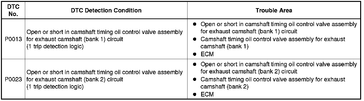 * If DTC P0013 is displayed, check the exhaust camshaft circuit for the right bank VVT system (bank 1).