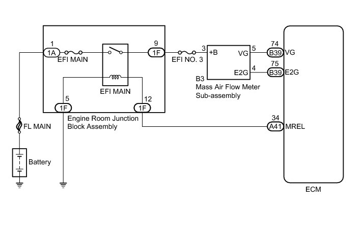 NG -- REPAIR OR REPLACE HARNESS OR CONNECTOR (MASS AIR FLOW METER - ENGINE ROOM JUNCTION BLOCK ASSEMBLY)