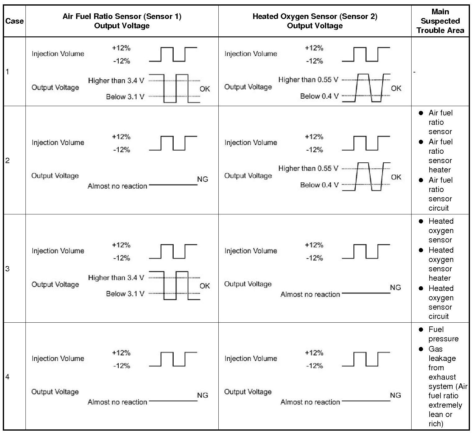 * Each sensor reacts in accordance with increases and decreases in the fuel injection volume.