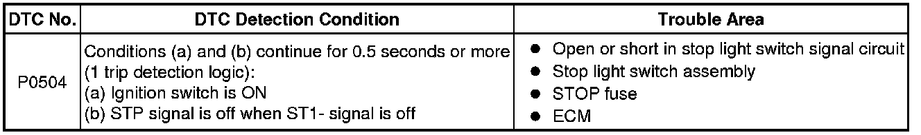 2GR-FE ENGINE CONTROL: SFI SYSTEM: P0504: Brake Switch "A" / "B" Correlation
