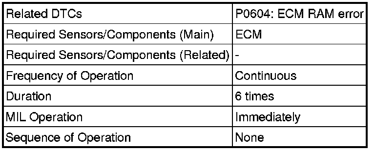 2GR-FE ENGINE CONTROL: SFI SYSTEM: P0604: Internal Control Module Random Access Memory (RAM) Error