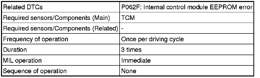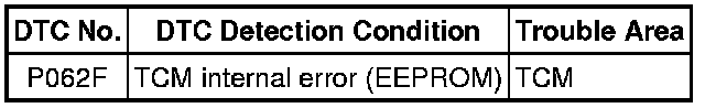 U660E AUTOMATIC TRANSMISSION / TRANSAXLE: AUTOMATIC TRANSAXLE SYSTEM: P062F: Internal Control Module EEPROM Error