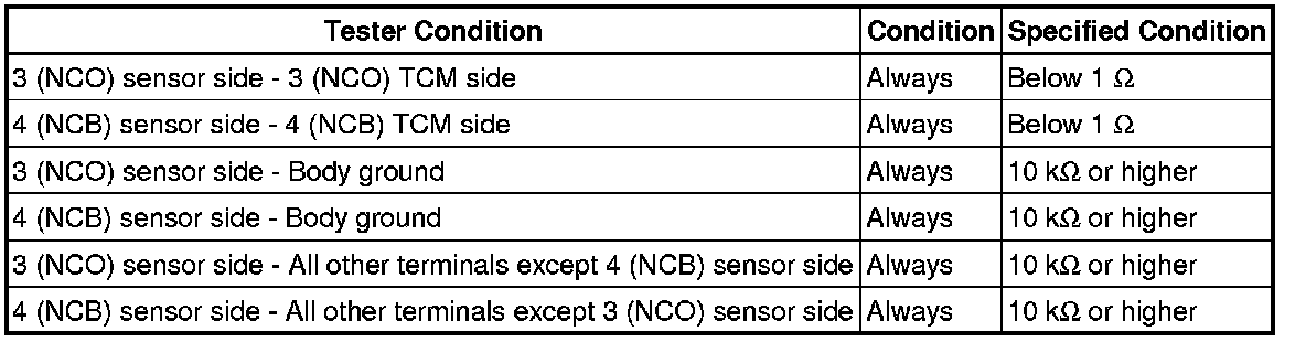 In the table below, the values listed under "Normal Condition" are reference values. Do not depend solely on these reference values when deciding whether a part is faulty or not.