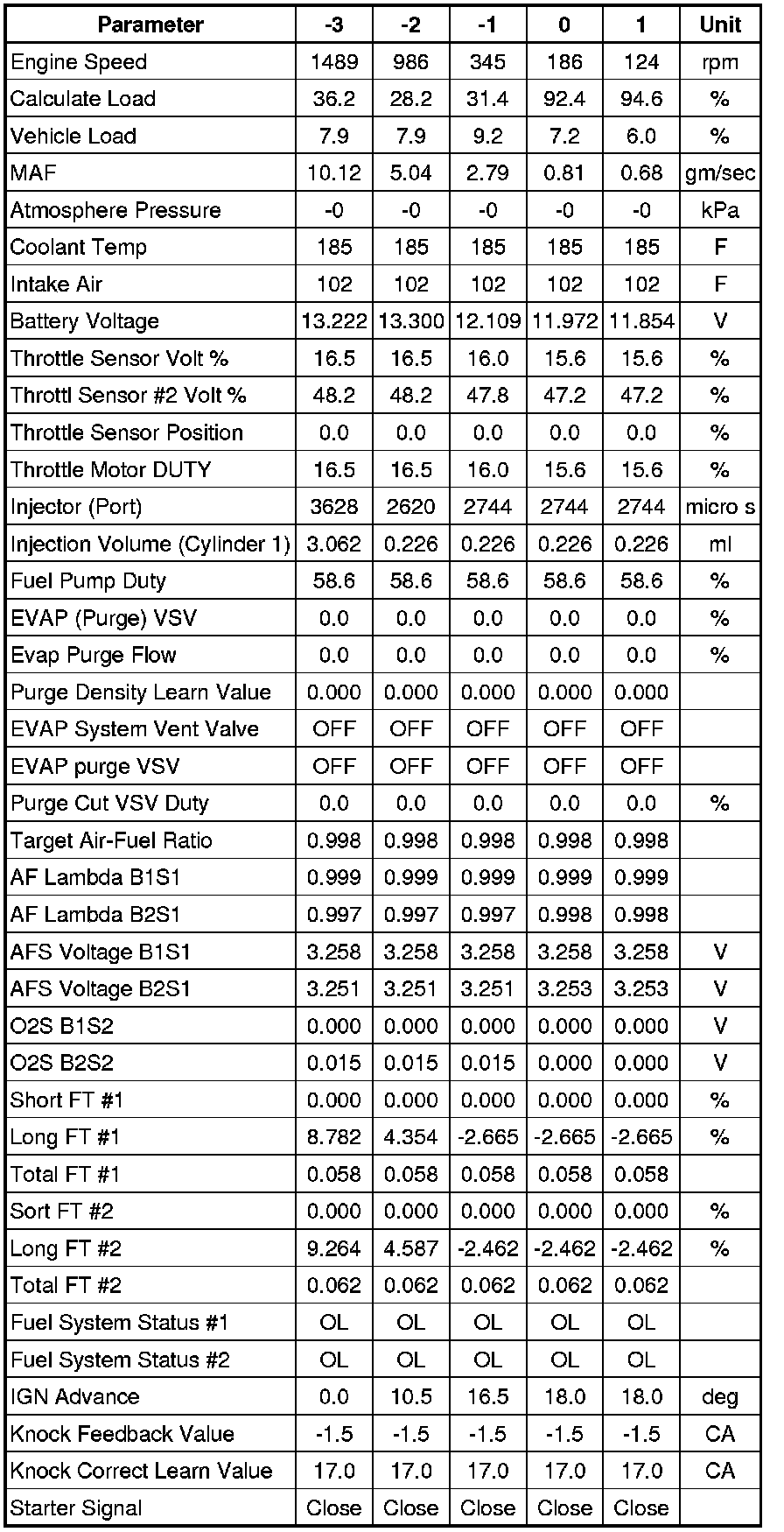 * This freeze frame data shows the actual engine conditions when engine starting trouble occurred.