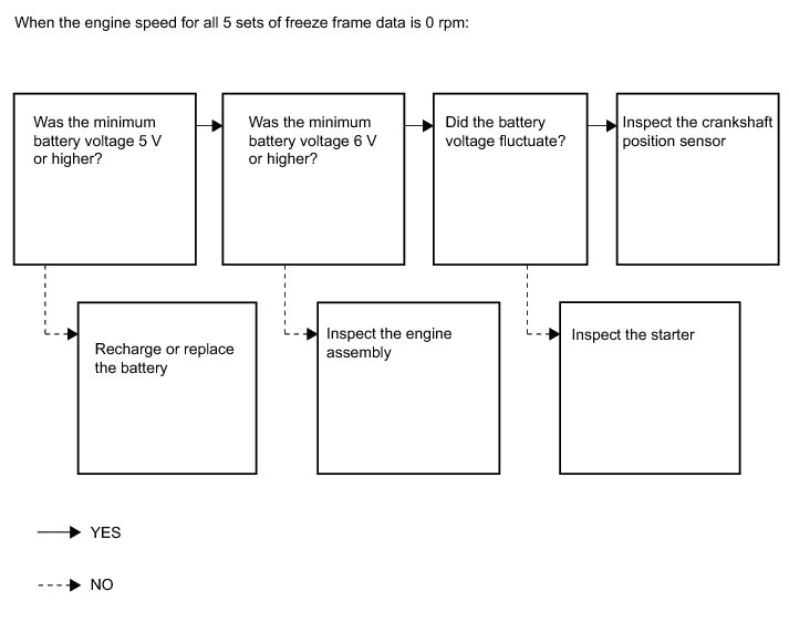 (1) The engine speed recorded in the freeze frame data is 0 rpm (the engine does not crank).
