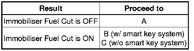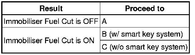 * When the Data List item "Immobiliser Fuel Cut" is ON, the engine cannot be started.