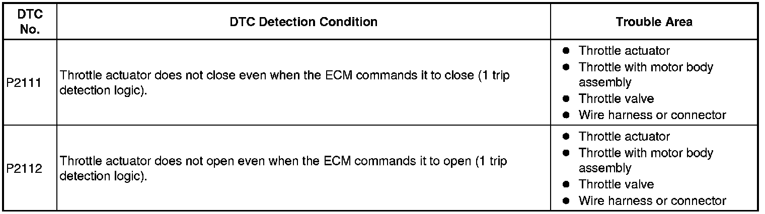 2GR-FE ENGINE CONTROL: SFI SYSTEM: P2111, P2112: Throttle Actuator Control System - Stuck Open