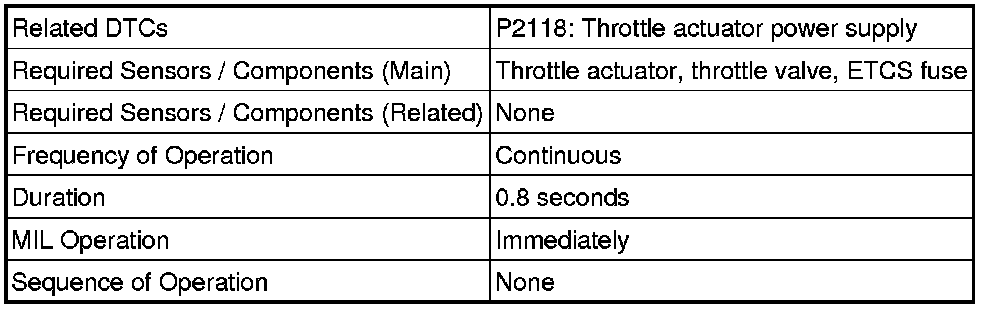 2GR-FE ENGINE CONTROL: SFI SYSTEM: P2118: Throttle Actuator Control Motor Current Range / Performance