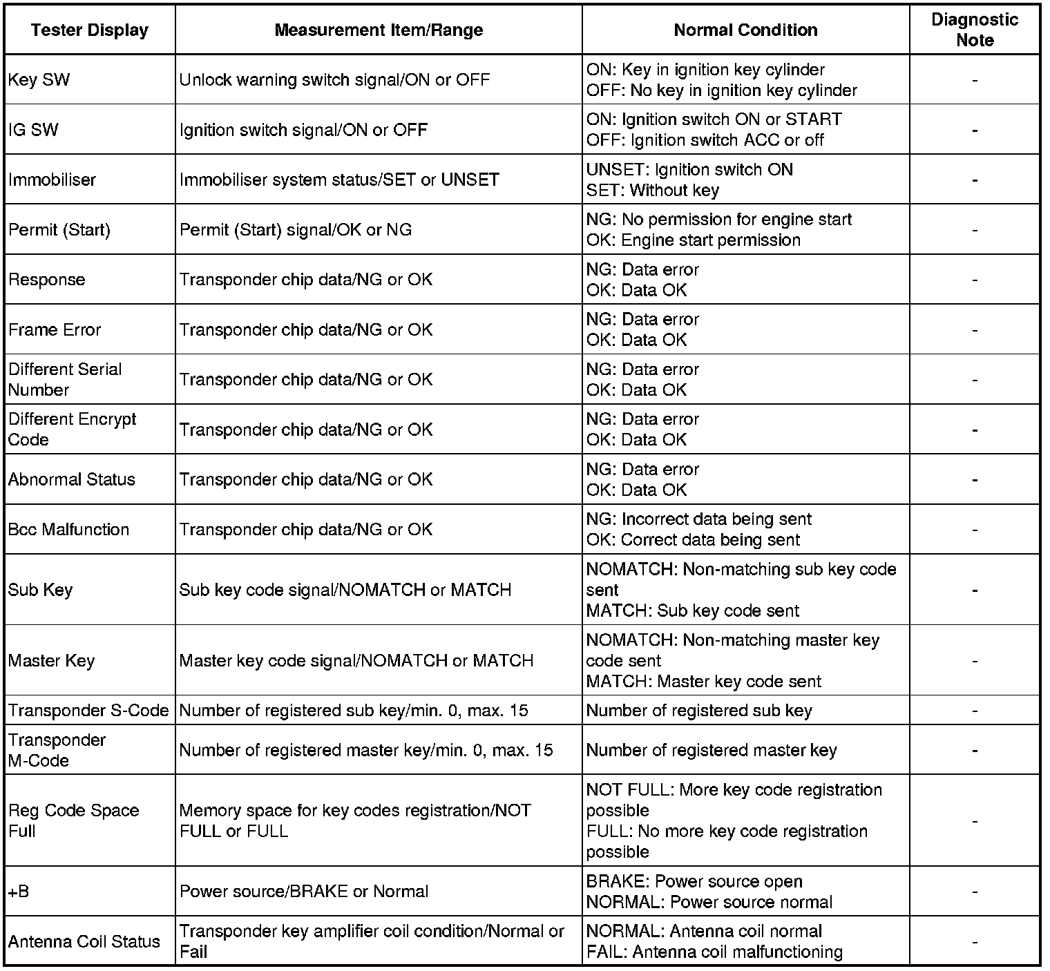 THEFT DETERRENT / KEYLESS ENTRY: ENGINE IMMOBILISER SYSTEM (w/o Smart Key System): DATA LIST / ACTIVE TEST