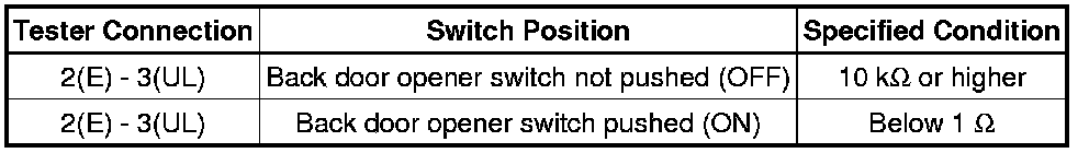 1. INSPECT BACK DOOR OPENER SWITCH ASSEMBLY