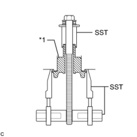 (b) Using SST, remove the front suspension member body mounting front cushion.