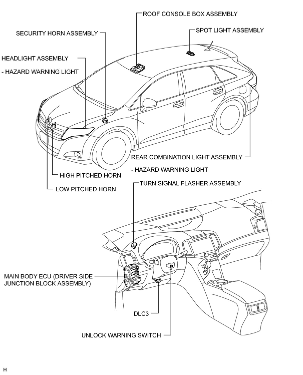 DOOR LOCK: WIRELESS DOOR LOCK CONTROL SYSTEM (w/o Smart Key System): PARTS LOCATION