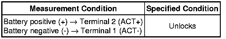 (1) Apply the battery voltage to the door lock motor and check the operation of the door lock motor.