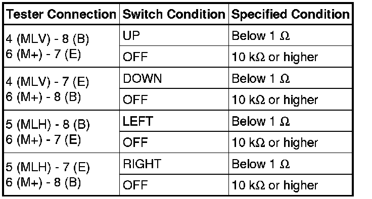 MIRROR (EXT): OUTER MIRROR SWITCH: INSPECTION