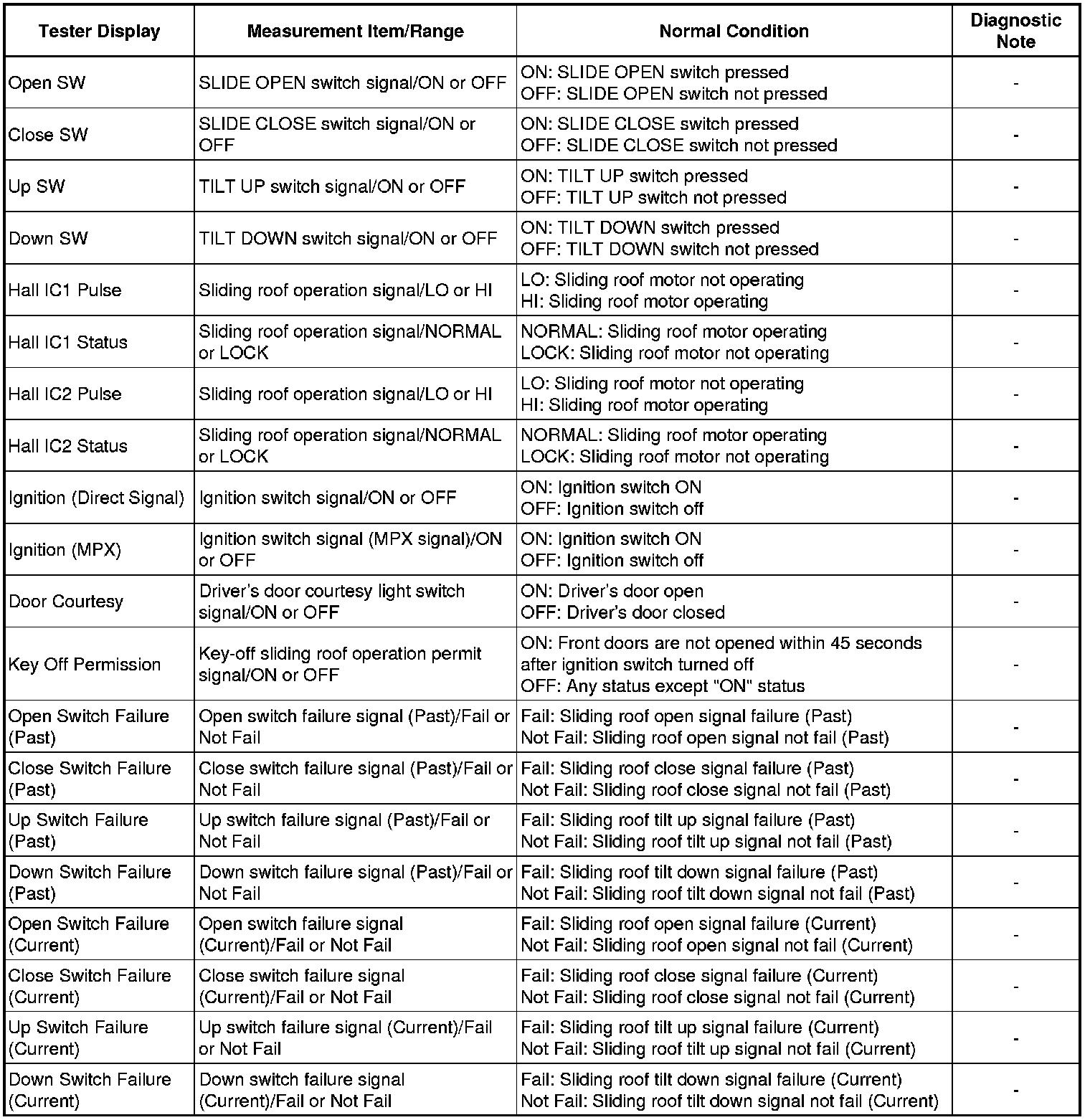 SLIDING ROOF / CONVERTIBLE: SLIDING ROOF SYSTEM: DATA LIST / ACTIVE TEST