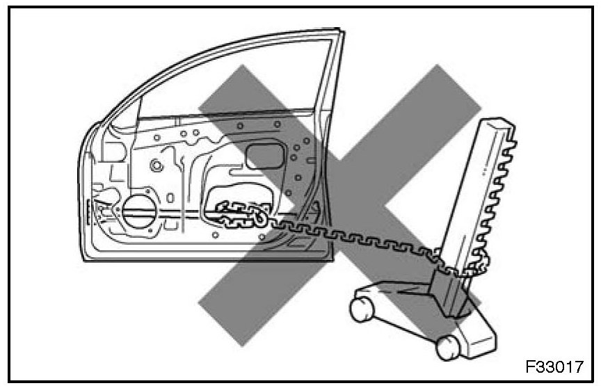 1. Never stand in the path of the chain when using a puller on the body or frame, and be sure to attach a safety cable.