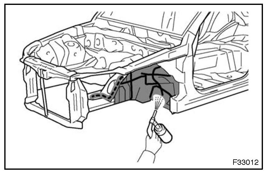 To prevent corrosion and protect the body from gravel, always apply a sufficient undercoating to the areas indicated.