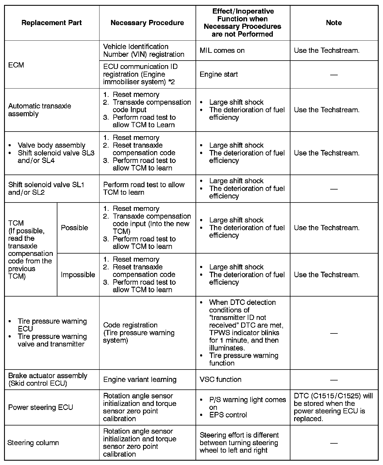 6. PROCEDURES NECESSARY WHEN ECU OR OTHER PARTS ARE REPLACED