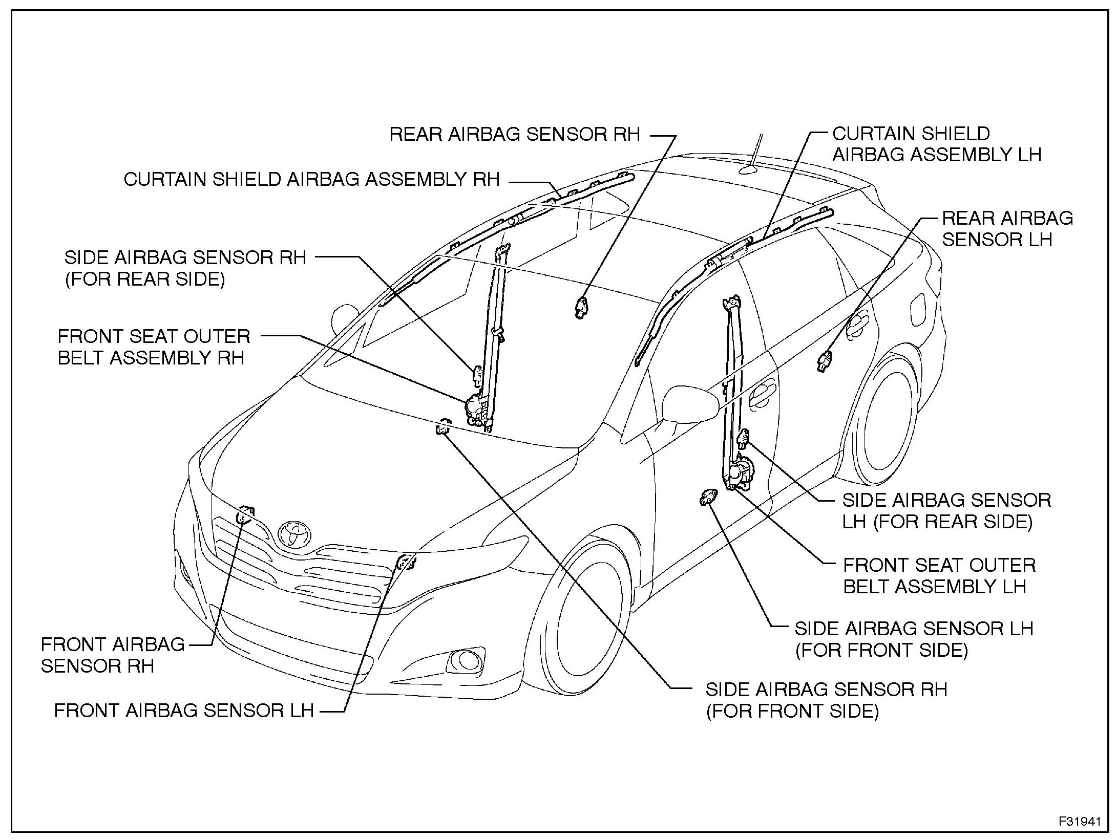 1 If impacts are likely to occur to the front airbag sensors, side airbag sensors, rear airbag sensors, or center airbag sensor remove each sensor as necessary beforehand.