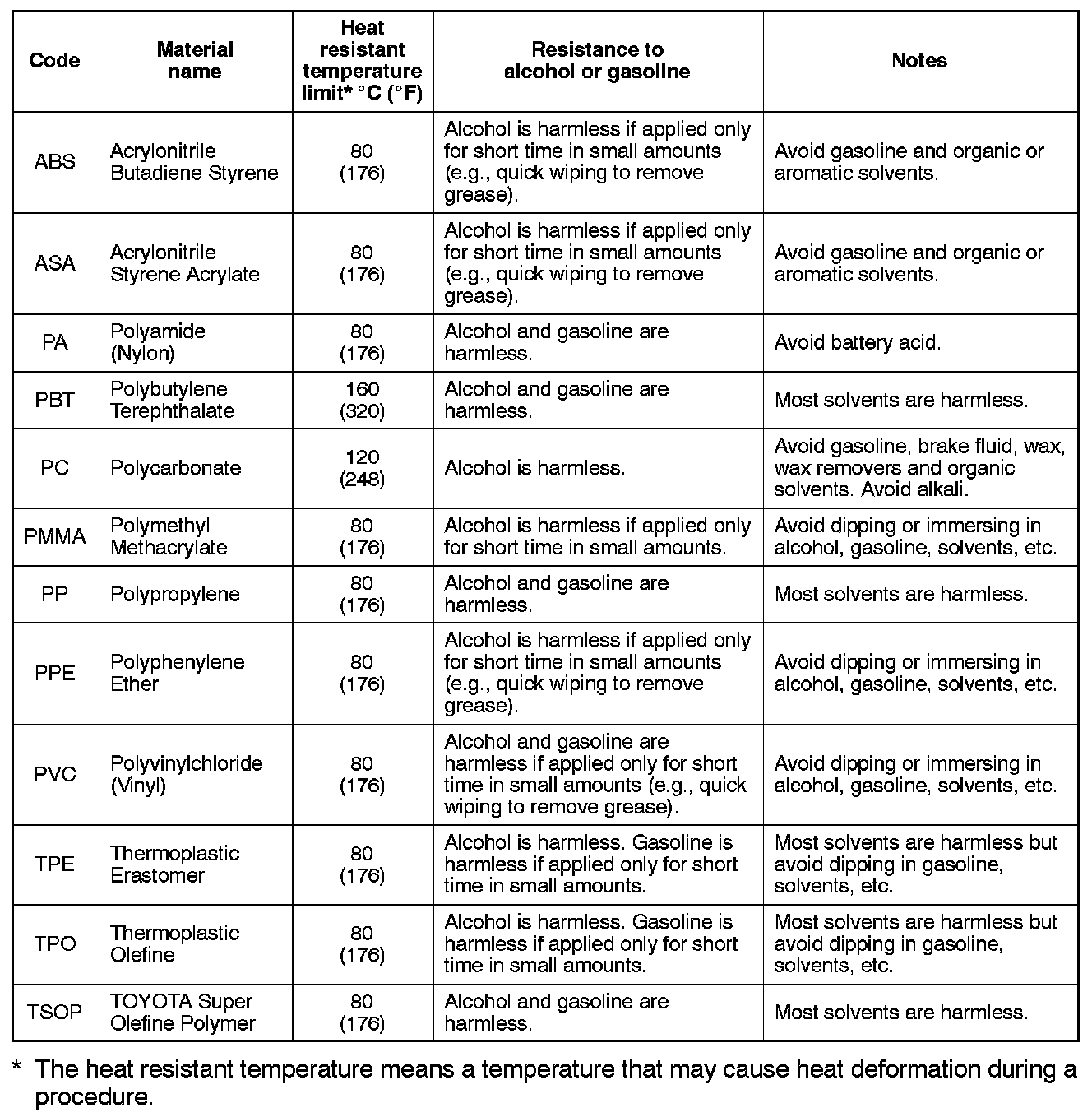 a. PLASTIC PROPERTIES CHART