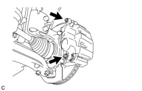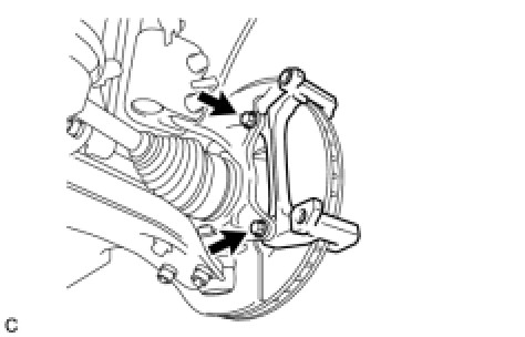 (a) Remove the 2 bolts and the front disc brake cylinder mounting.