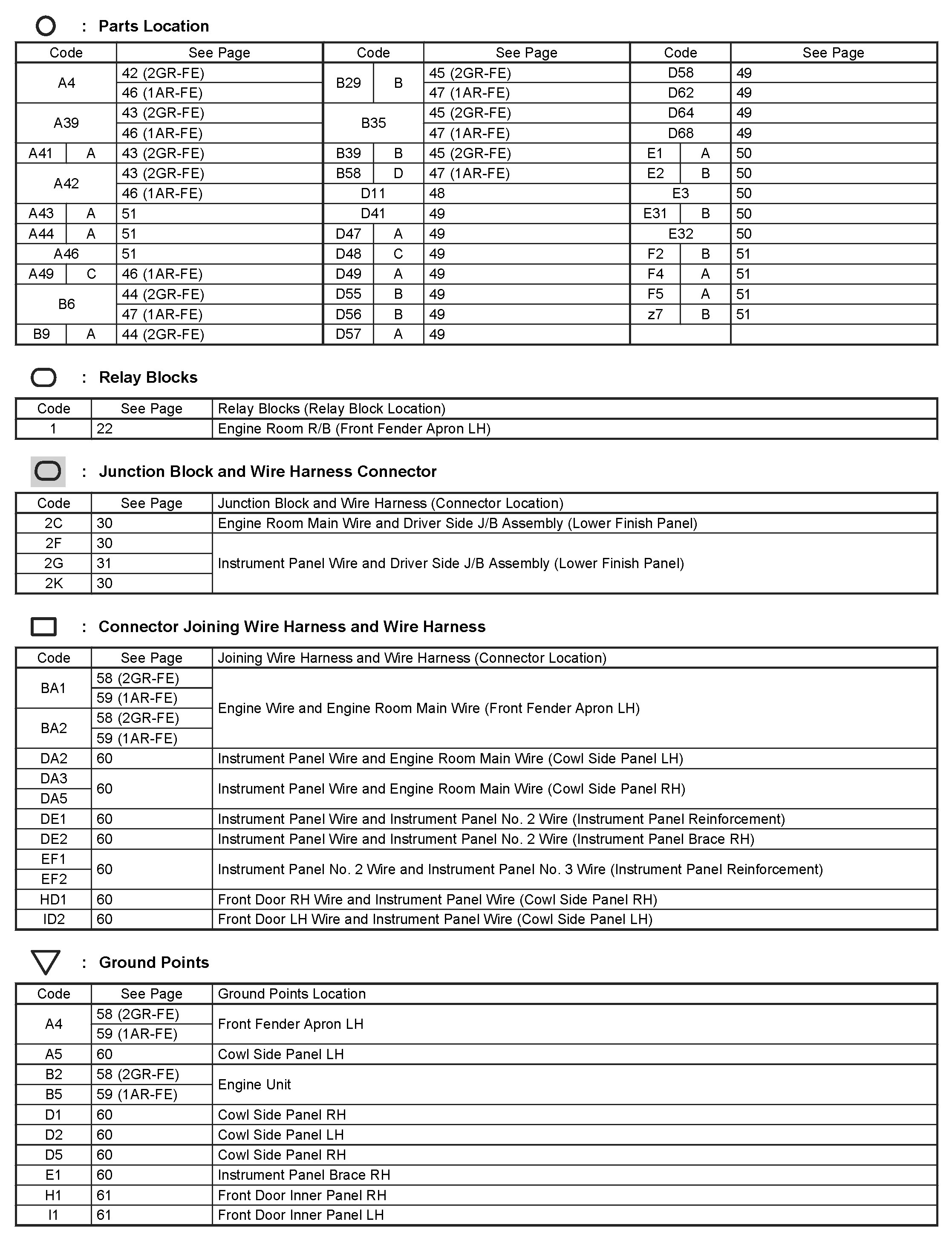 Locations: The locations of components, connectors, ground points, and splices referred to within these diagrams can be found at Vehicle Locations. Locations