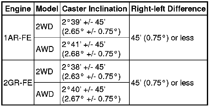 3. INSPECT CAMBER, CASTER AND STEERING AXIS INCLINATION