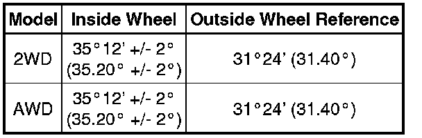 Wheel Turning Angle (Unloaded Vehicle):