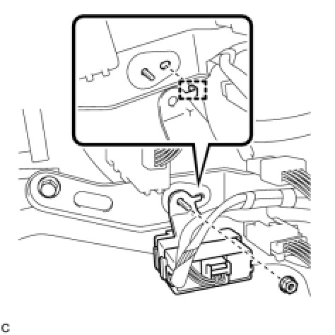 Engage the tab into the hole as shown in the illustration to install the tire pressure warning ECU.