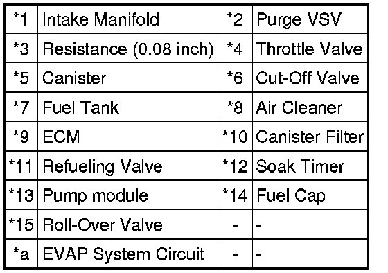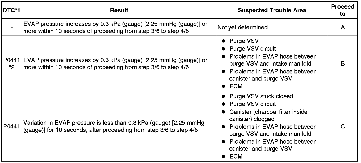 * *2: This result suggests that due to purge line blockage or purge VSV malfunction, the DTC was stored by the purge flow monitor while the engine was running, or that key-off monitor test result were nearly borderline values.