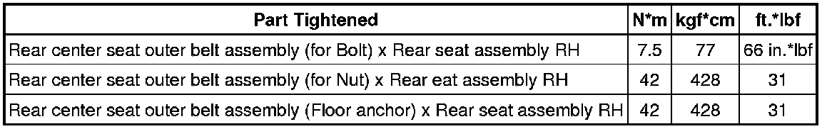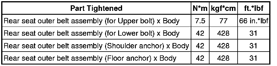 SPECIFICATIONS: SEAT BELT: TORQUE SPECIFICATIONS