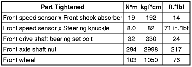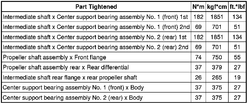 SPECIFICATIONS: DRIVE SHAFT / PROPELLER SHAFT: TORQUE SPECIFICATIONS