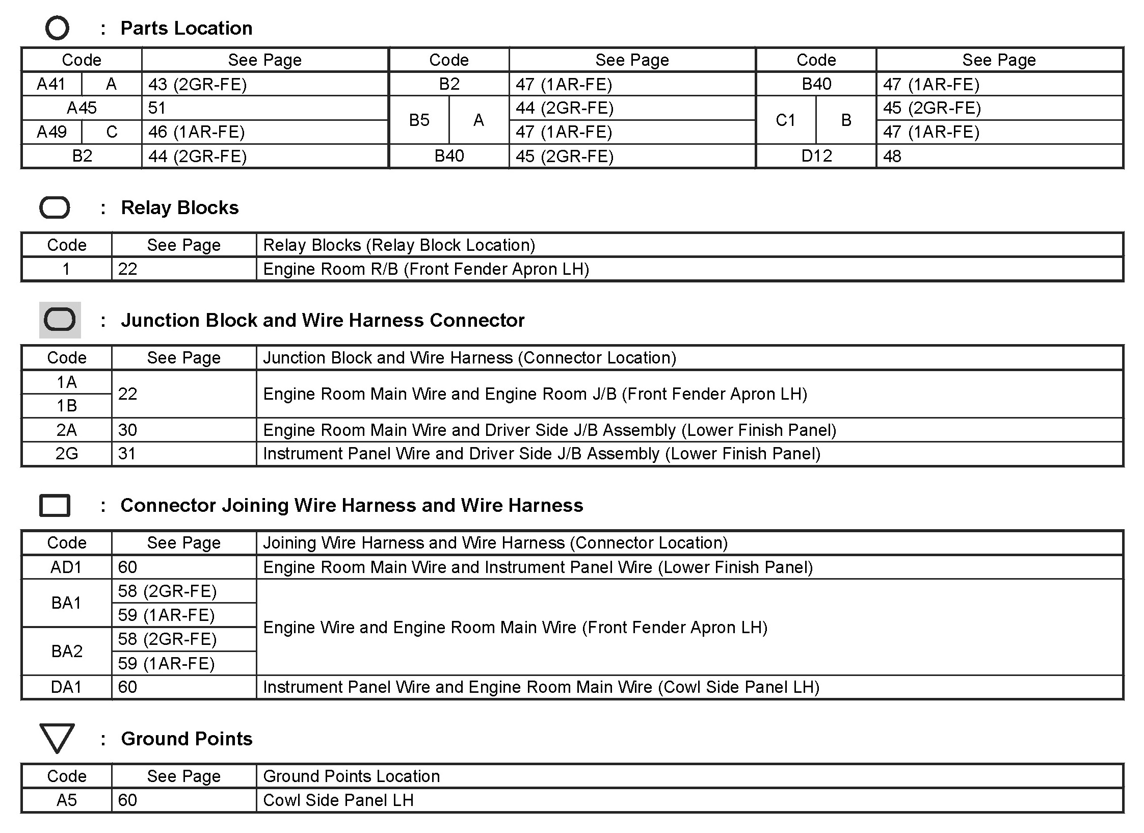 Locations: The locations of components, connectors, ground points, and splices referred to within these diagrams can be found at Vehicle Locations. Locations