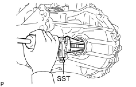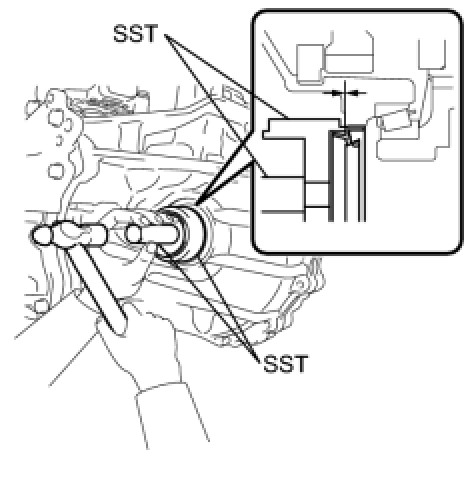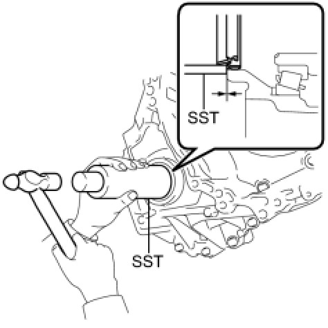(a) Using SST and a hammer, tap in a new transaxle case oil seal.