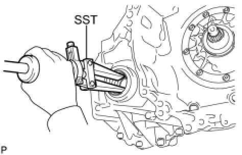 (a) Using SST, tap out the transaxle case oil seal.