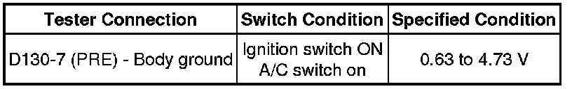 * If refrigerant pressure on the high pressure side becomes extremely high during the inspection (the voltage exceeds 4.8 V), the fail-safe function stops compressor operation. Therefore, measure the voltage before the fail-safe operation.