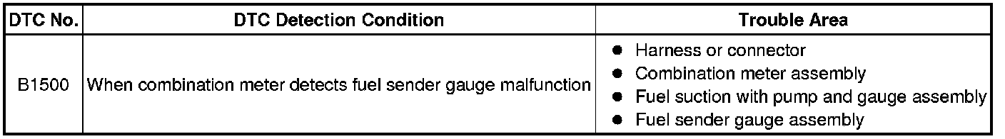METER / GAUGE / DISPLAY: METER / GAUGE SYSTEM (for Hatchback): B1500: Fuel Sender Open Detected