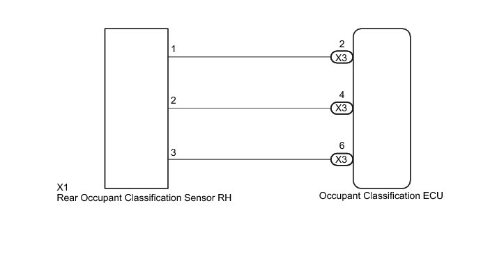 The rear occupant classification sensor RH circuit consists of the occupant classification ECU and the rear occupant classification sensor RH.