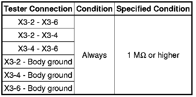 (j) Measure the resistance according to the value(s) in the table below.