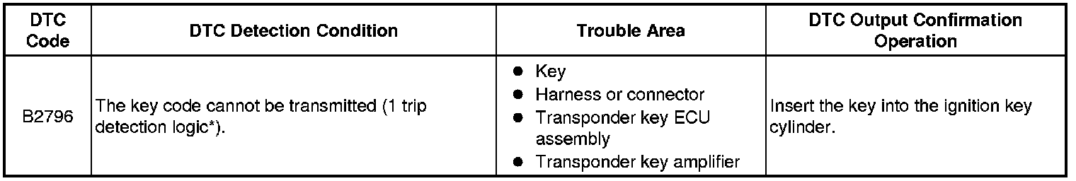 * DTC B2796 is stored when a key is inserted into the ignition key cylinder but no communication occurs between the key and transponder key ECU assembly.