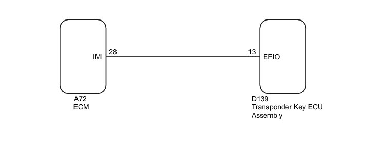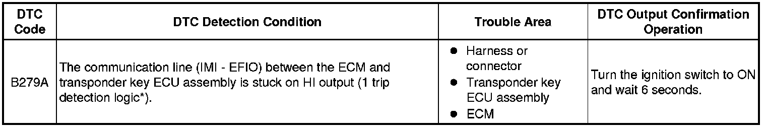 When the communication line (IMI - EFIO) between the ECM and transponder key ECU assembly is stuck on HI output, the ECM stores this DTC.