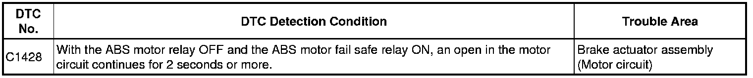 BRAKE CONTROL / DYNAMIC CONTROL SYSTEMS: ANTI-LOCK BRAKE SYSTEM (for Hatchback): C1428: Motor Circuit Malfunction