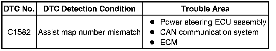 When an incorrect ECM is installed after the assist map has been recorded in the power steering ECU assembly, then DTC C1582 is stored because the data does not match the vehicle specifications.